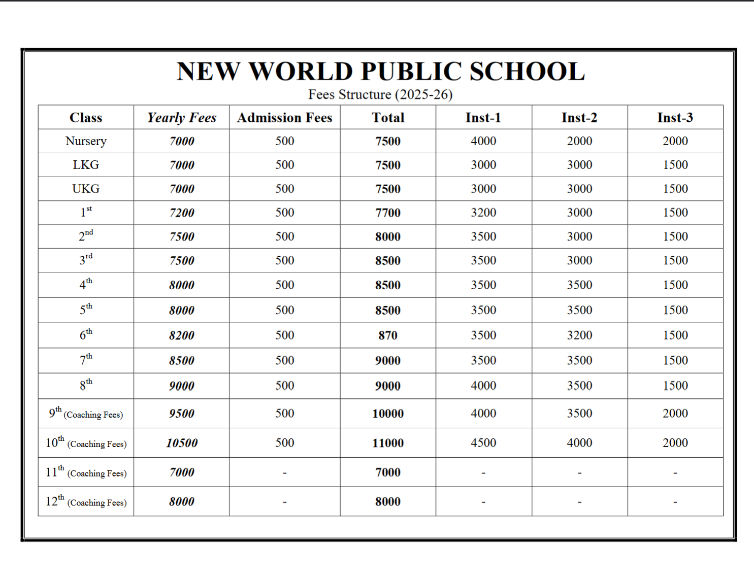 Transparent Fee Structure at New World Public School